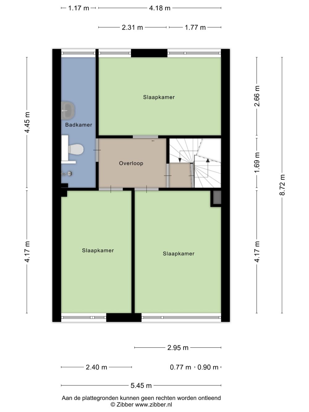 Eerste verdieping: overloop, 3 slaapkamers en een nieuw geplaatste badkamer met wastafel, toilet en inloopdouche.