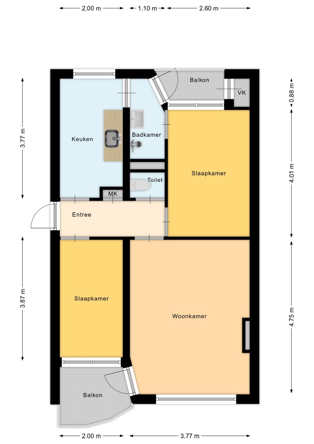 een keuken, woonkamer, twee slaapkamers en een badkamer. Alles wat je nodig hebt, toch?