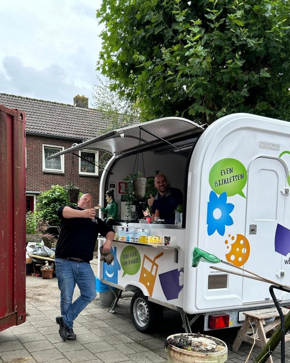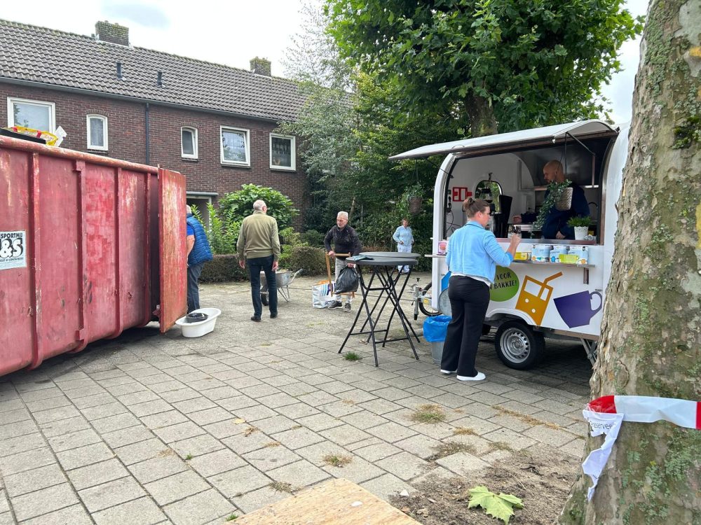 Als voorbereiding organiseerden we een opruimdag. Dat was een groot succes. In de drie straten vulden bewoners in no-time drie grote containers met spullen die ze niet meer nodig hadden. Onze eigen koffiekar zorgde voor een gezellige pauze met koffie, thee en een praatje.